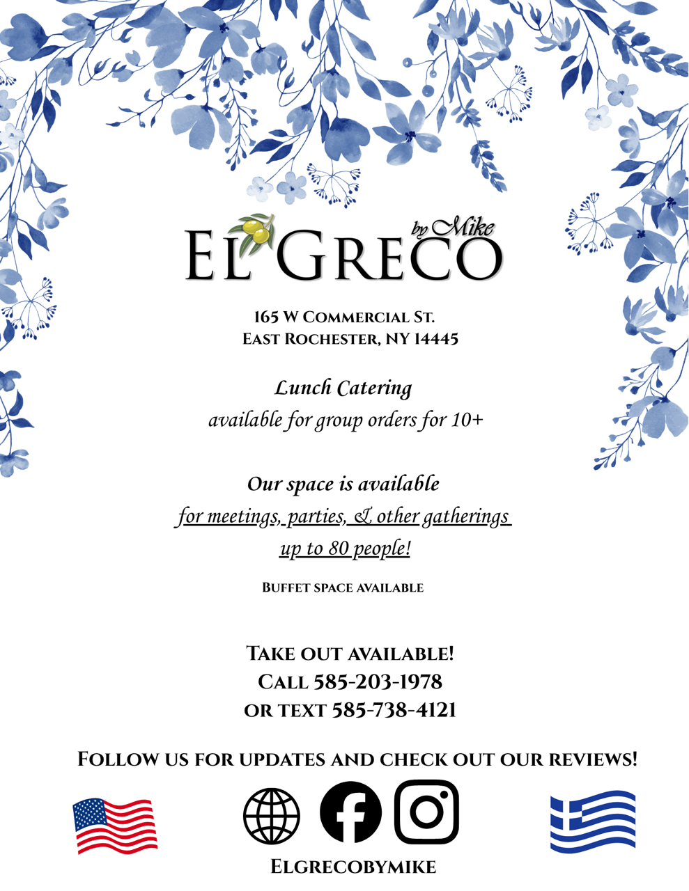 Greek Red/Rose Menu | El Greco, East Rochester, NY